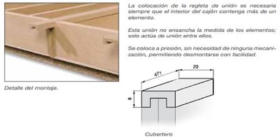 Puede montarse la composición deseada en función del modelo y la medida del cajón. Debe tenerse en cuenta que se necesitan dos regletas de ajuste y las uniones especificadas en cada caso.