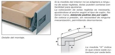 REGLETAS AJUSTE PARA CAJONES EUROBOX , BLUM , GRASS Y HETTICH